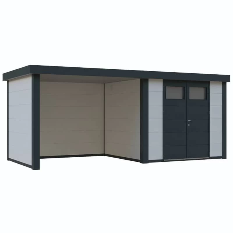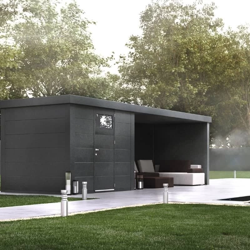 La caseta de jardín con apoyo cerrado es una estructura bien diseñada que proporciona tanto almacenamiento adicional como un área cerrada de apoyo. Fabricada en acero, proporcionando durabilidad y resistencia a las condiciones climáticas.