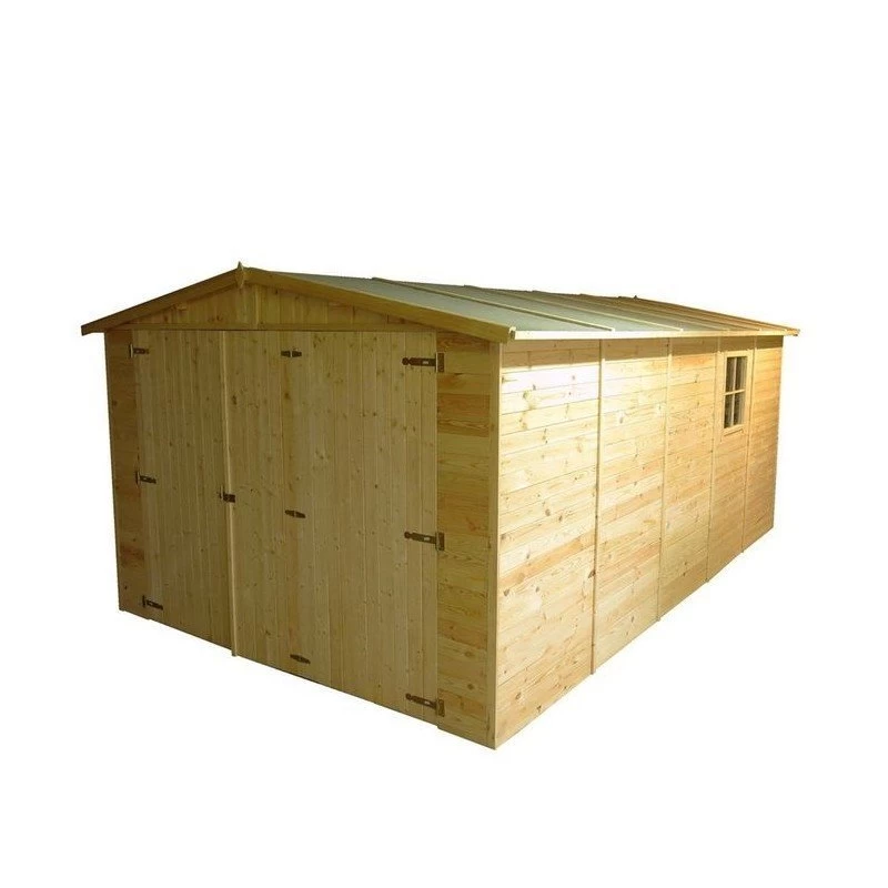 Garaje de madera Mikhail I de alta calidad con tejado a dos aguas y ventana.