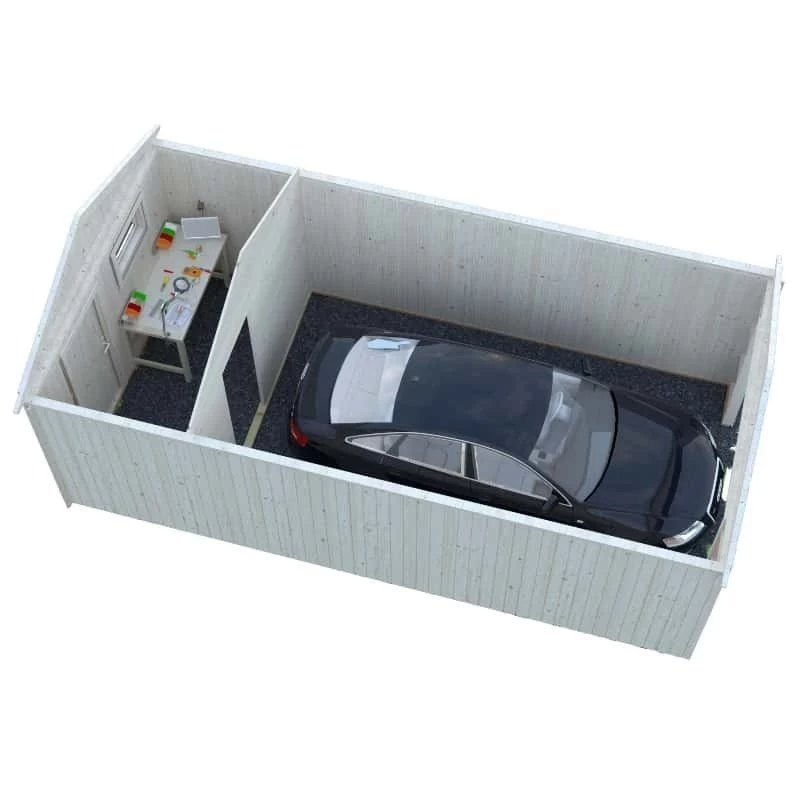 Tela asfáltica negra (adecuada como capa interna): 5 rollos, material para tejados SBS: 5 rollos, teja asfáltica: 13 paquetes, clavos para tejados, tubos de desagüe, puerta y ventana adicional, alero, puerta y ventana adicional, motor para puertas seccionales de garaje.