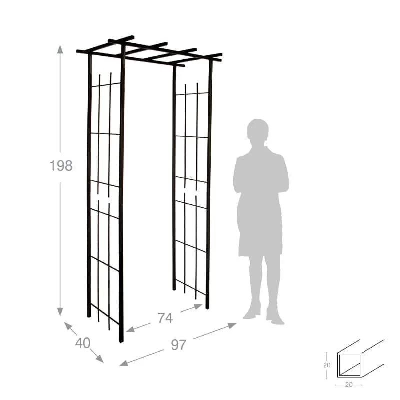 Este arco de pérgola es ideal para tu exterior, sirve como soporte para tus plantas trepadoras pero también tiene una función decorativa, se puede adornar con soportes para jardineras, suspensiones florales, farolillos o incluso guirnaldas. Modular, el tamaño del paso es ajustable. Crea un lugar cálido para tu exterior. En tubo cuadrado de 20 mm, lo que asegura una muy buena robustez del producto.