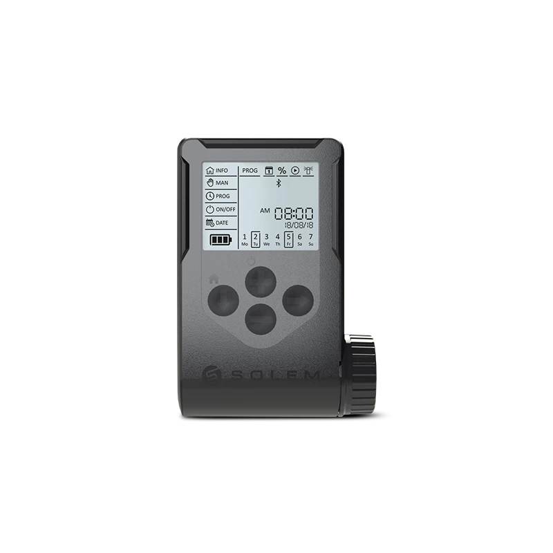 El WooBee es un controlador de riego Bluetooth®, resistente al agua y que funciona con pilas, diseñado para programar electroválvulas de 9 V de manera secuencial. Además, cuenta con una pantalla grande que facilita su operación. Su entrada para contador de agua le permite monitorear fugas, así como el consumo excesivo o insuficiente de agua.
