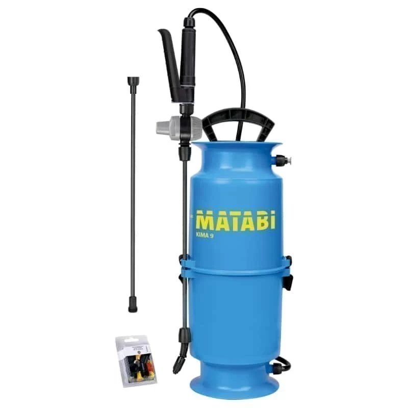 Pulverizador de presión previa de 6 litros útiles, lanza de fibra de vidrio, manilla ergonómica, filtro con juntas de vitón y muelle inoxidable, válvula de cierre de la cámara en vitón y dispositivo para sujetar con los pies al ponerle en presión.