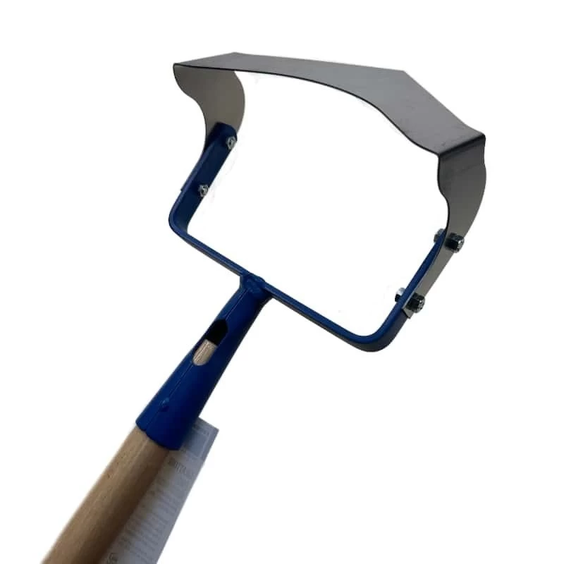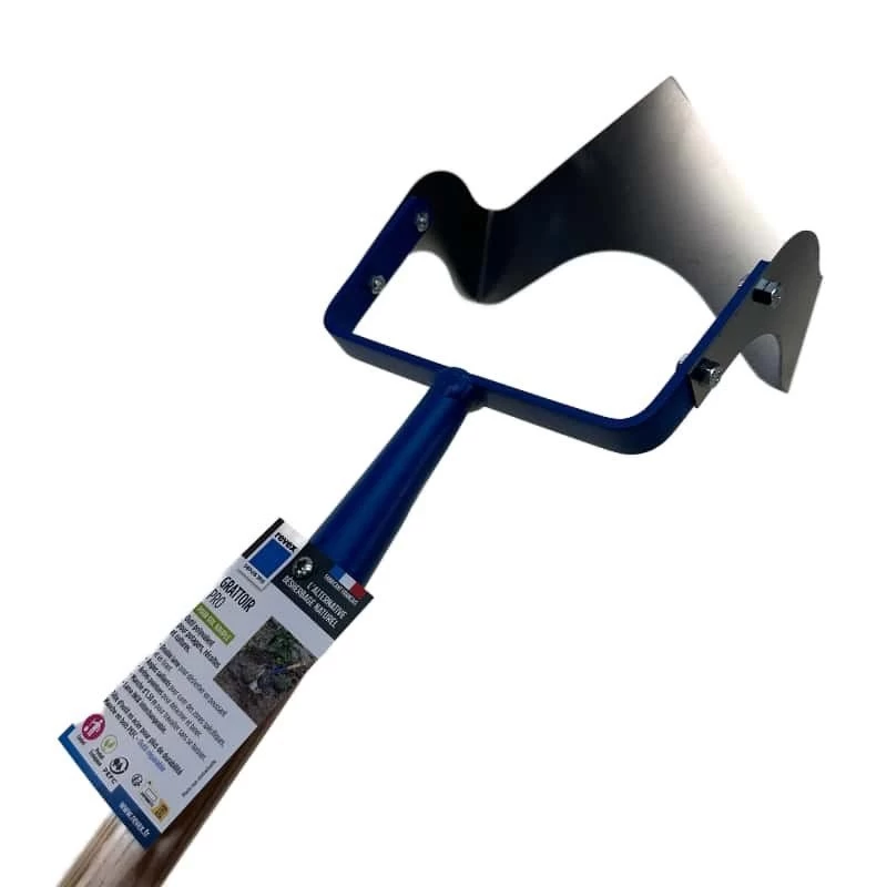Con un mango largo de madera de 3 cm de diámetro y 150 cm de longitud, esta herramienta permite un alcance cómodo y eficiente, reduciendo la necesidad de agacharse y facilitando el manejo durante períodos prolongados.